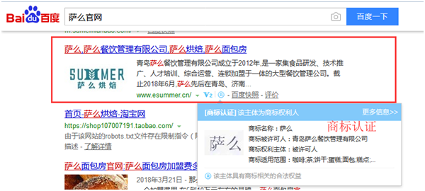 4、官網(wǎng)認(rèn)證高級(jí)版:搜索品牌詞或者商標(biāo)出現(xiàn)官網(wǎng)標(biāo)識(shí)。按詞收費(fèi),每個(gè)詞最低3000,以后臺(tái)查詢?yōu)闇?zhǔn)。